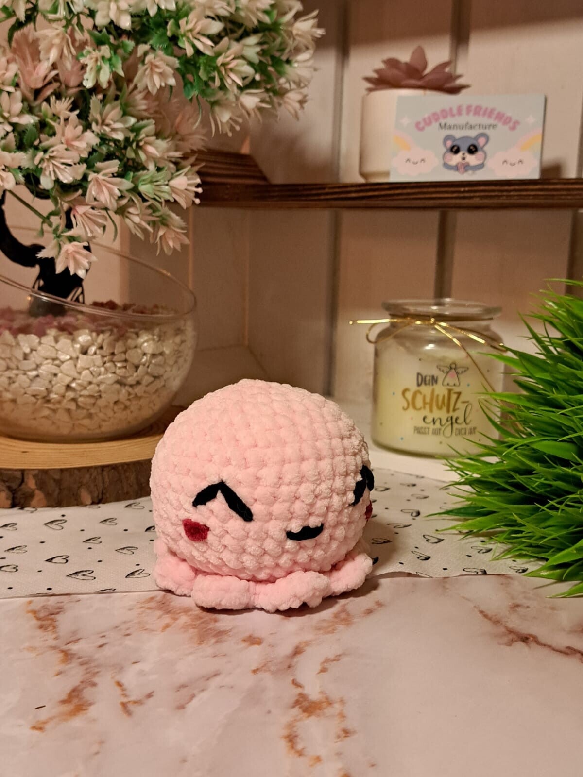 Dieser süße kleine Kuschel-Oktopus ist mit ganz viel Liebe gemacht. Sein neues Zuhause wird er mit seinen treuen Augen sofort erhellen und sein flauschiger Körper ist geradezu perfekt fürs Schmusen geeignet. Wer diesen Oktopus bei sich aufnimmt, hat einen Begleiter fürs Leben gefunden.